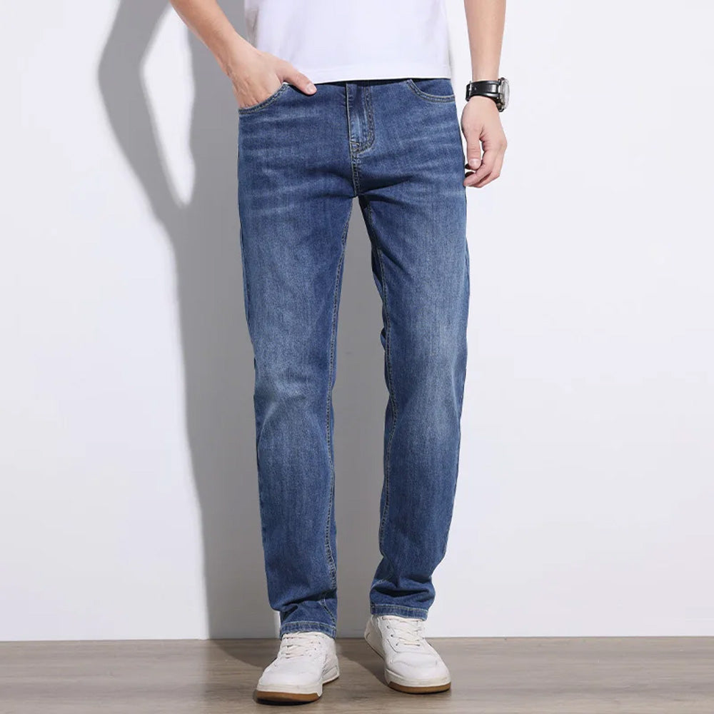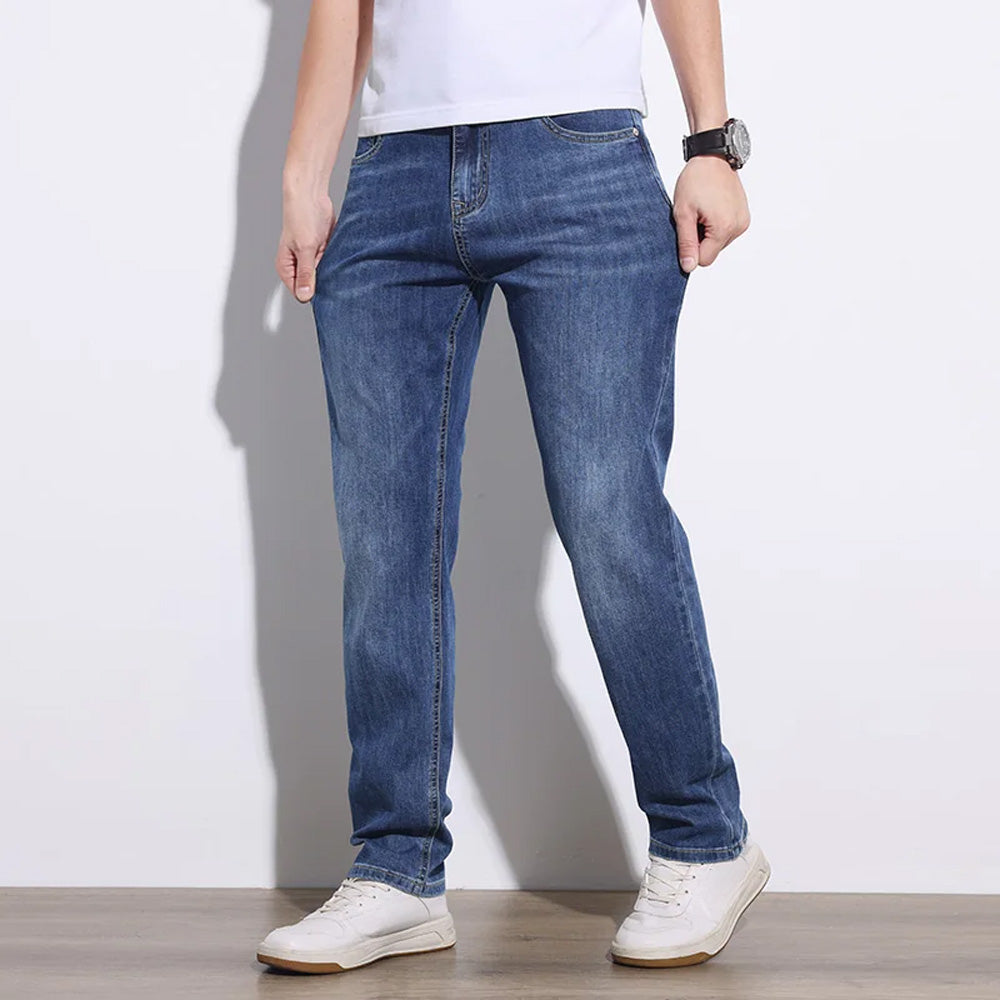 The Essential Jeans fuse heritage denim with premium stretch cotton. A versatile straight fit that flatters the male silhouette while delivering day-long ease and understated elegance.